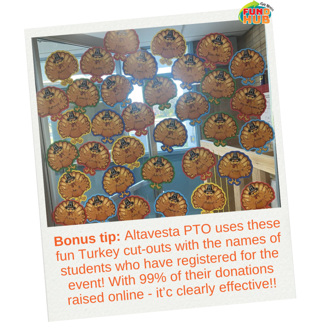 - Mini Challenges: Offer a fun incentive like, “Raise $500 more, and the principal will finish the race in a turkey costume!” Or, if we get 20 more social share today, then we will have a pie eating contest between the teachers!