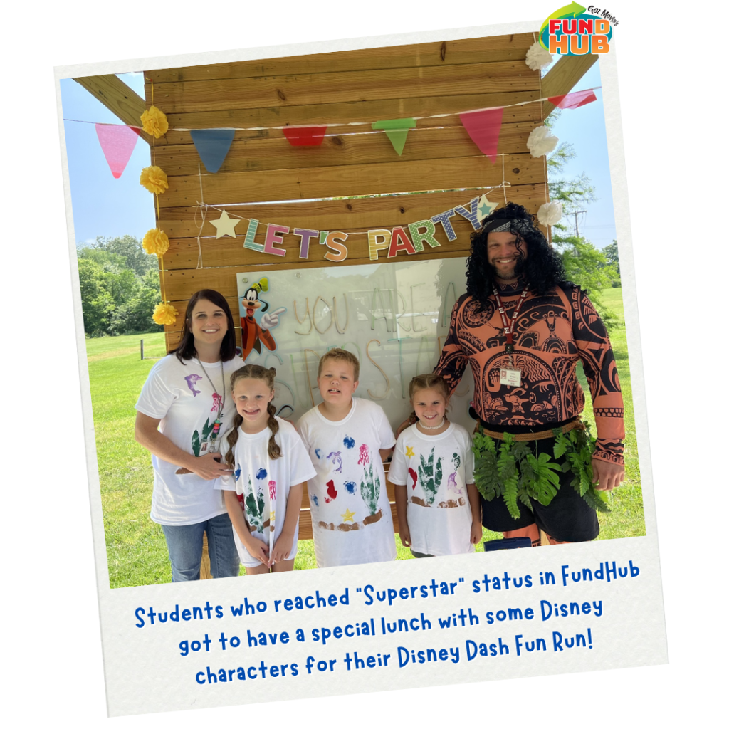 For the big finale, plan a “Happily Ever After” celebration where students and teachers dress as their favorite Disney characters. Heath Elementary rewarded superstar students with a character lunch featuring Moana’s Maui, giving top fundraisers a memory straight out of a Disney story.