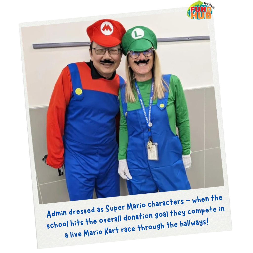 Each class can become a ‘team’ on its own adventure through the Mario world. Every donation collected helps them ‘level up’ and move closer to the finish line. When students reach a milestone, they earn a power-up: small rewards like extra recess or themed stickers.