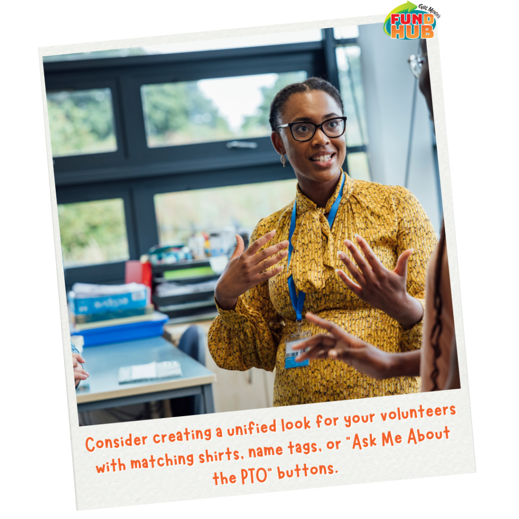Consider creating a unified look for your volunteers with matching shirts, name tags, or “Ask Me About the PTO” buttons. Set up in a central location—near the entrance, registration table, or wherever families are sure to pass by. If there’s a microphone moment or principal welcome, ask to briefly introduce your board and invite families to stop by your table afterward.