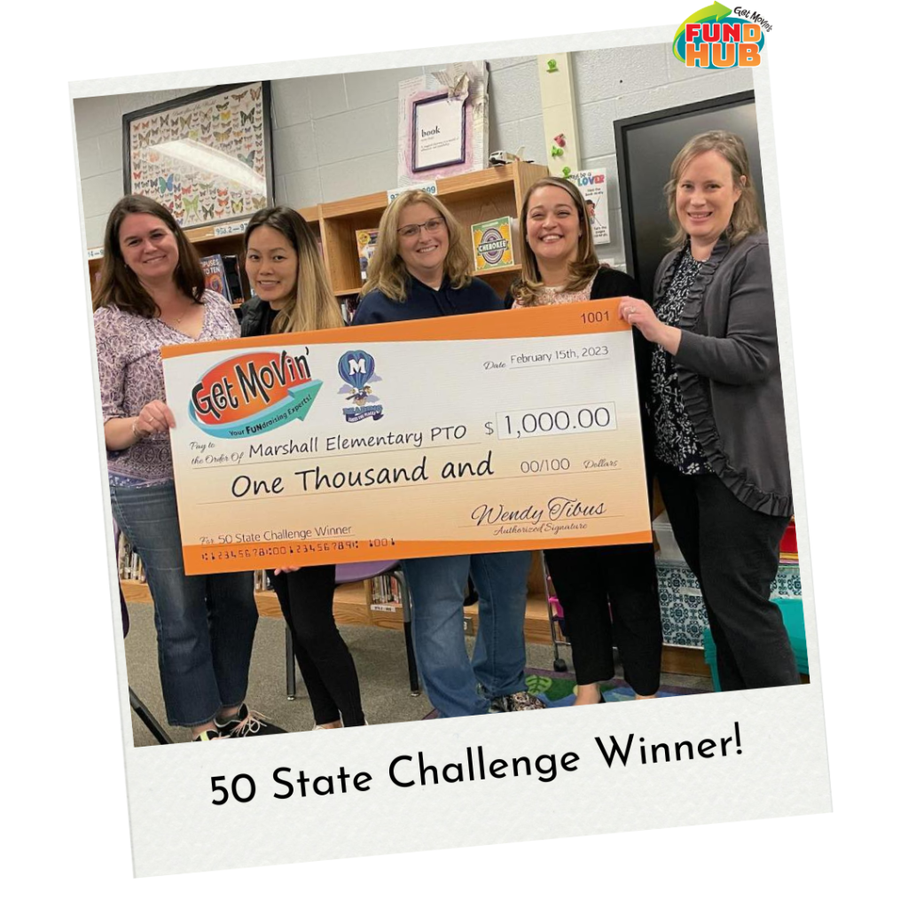 Get Movin’ has a special $1k prize for any school on FundHub that achieves the 50 State Challenge! This can be easily tracked using our online donation map.