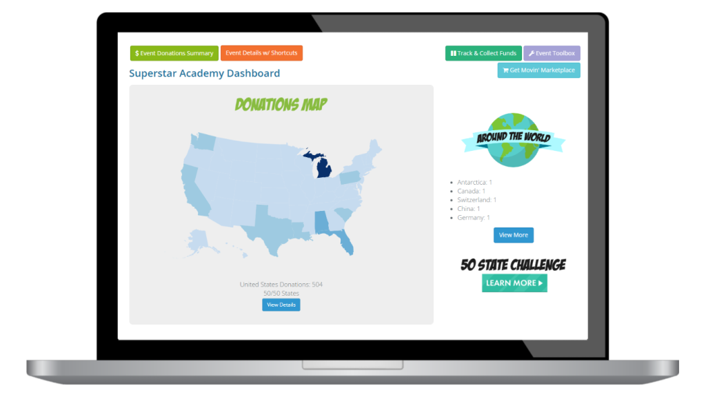 With Get Movin’, you have the opportunity to double – or even triple – what you’ve been able to raise on your own. Plus, we believe that if you raise it then you should keep it. We don’t take a steep percentage of your hard-earned donations or hit you with hidden fees at the end of your event. Our schools keep an average 95 – 97% profit, while getting the most online tools, resources, and expert guidance than any other service offers.
